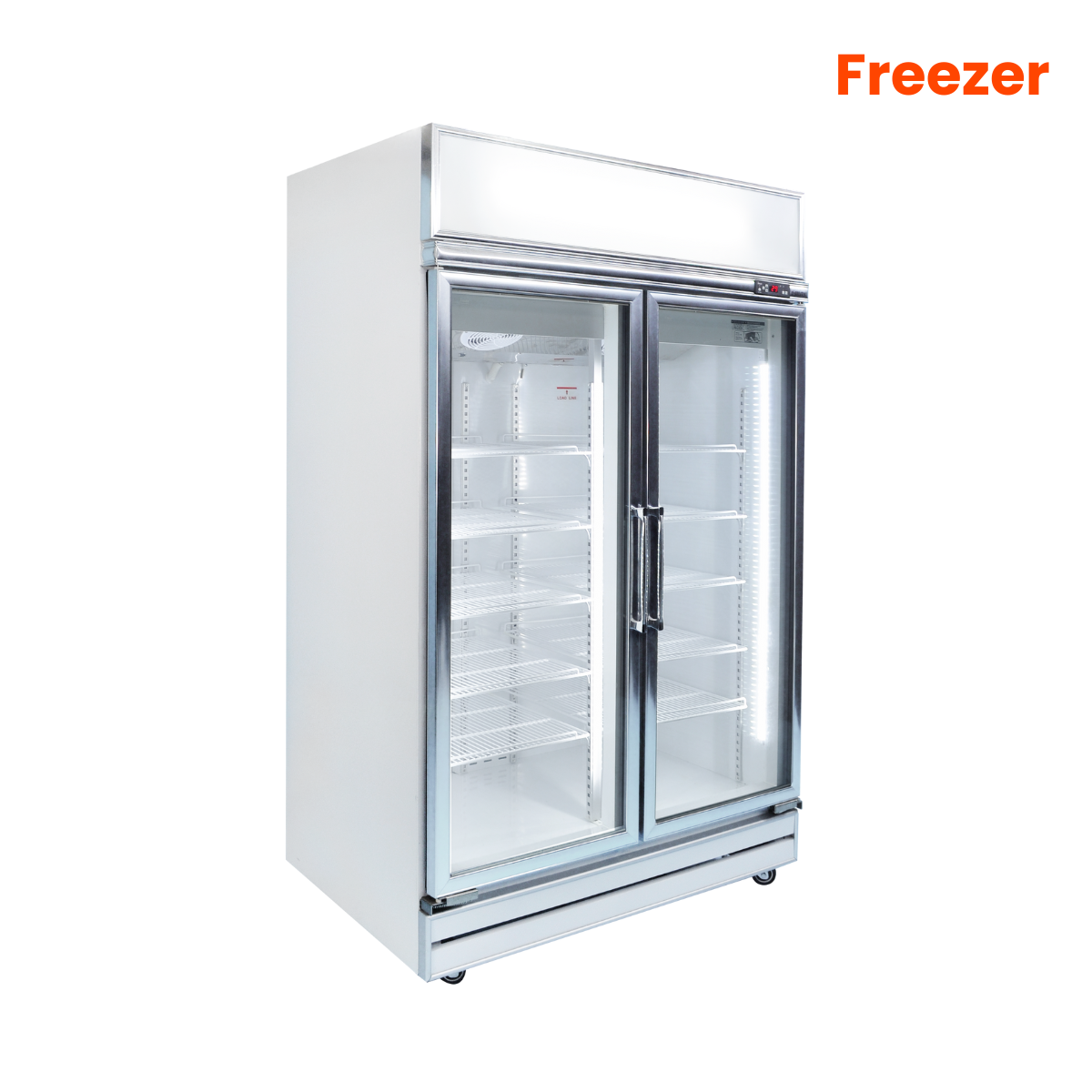 2 Door Display Freezer with Heater Glass & Body Heater (Premium) is perfect for retail shop, supermarket, convenience store and so on! Its tempered glass with heater but provide HD transparent display to customer. LED energy-saving tubes can present the best display effect for 24 hours, and high-density insulation can save energy. It’s have automatic defrost system, and the efficient refrigeration system keeps your food fresh & cool. In addition, the casters with brake system can be used more safety.